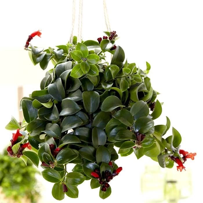 L’Aeschynantus Mona Lisa convient pour une utilisation dans des paniers suspendus ou des pots en hauteurs. L’Aeschynantus Mona Lisa est une variété décorative et forte avec des feuilles vertes brillantes. Aux extrémités des vrilles se forment des calices tubulaires à partir desquels apparaissent les boutons floraux.