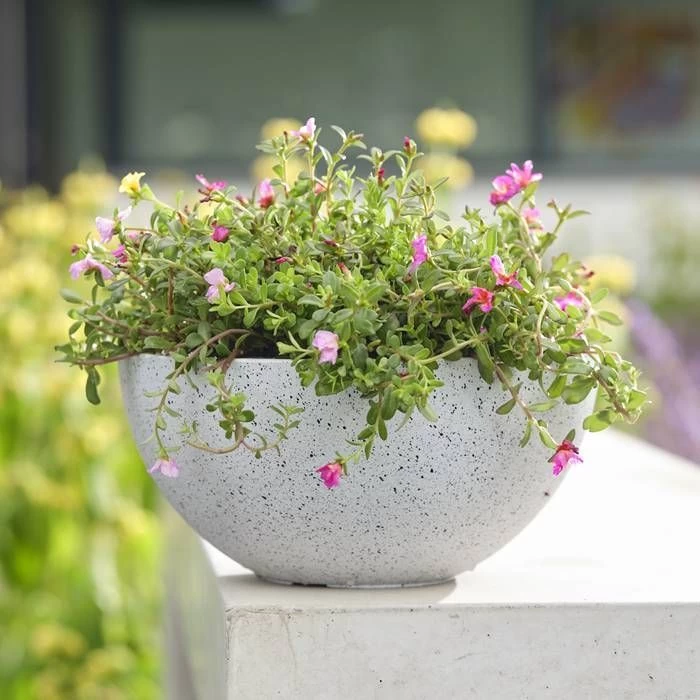 Les pots Cera-Mix sont fabriqués avec 50 % de plastique recyclé et 50 % de poudre de pierre naturelle. Un mélange unique de matériaux durables qui n’est plus un déchet, mais un magnifique pot durable.